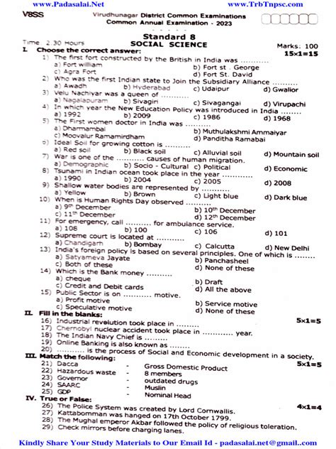 By following these tips and utilizing the 8th Class Social SA1 question paper effectively, you can increase your chances of success and achieve your academic goals. Remember, preparation is key to success, so start early and stay focused. Good luck with your exams!
