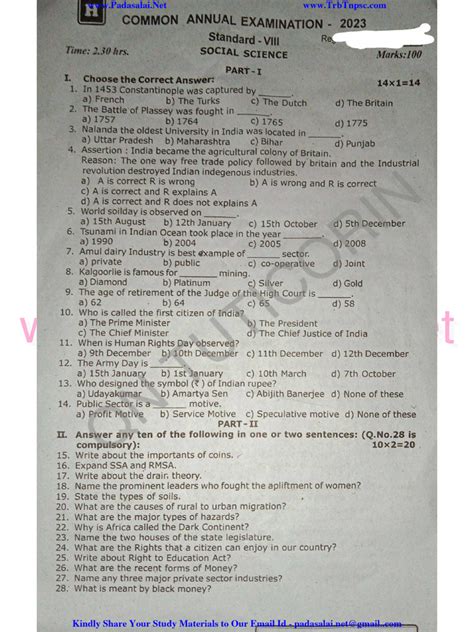 Moreover, excelling in social science helps you develop critical thinking skills. You’ll learn to analyze information, evaluate different perspectives, and form your own opinions. These skills are invaluable in all aspects of life, from making everyday decisions to solving complex problems. The 8th Standard Social Science question paper challenges you to apply these skills, encouraging you to think critically and creatively.
