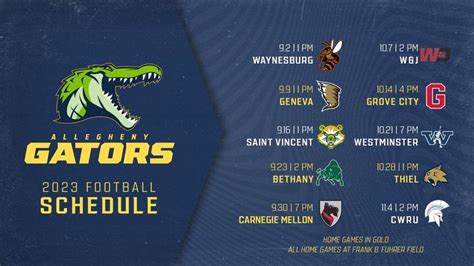So there you have it, folks! This guide provides a comprehensive overview of the Allegheny Gators football schedule . You now have the knowledge you need to follow the team throughout the season. Remember to check the official resources for the most up-to-date information, mark your calendars, and gear up to support the Gators. Whether you’re a long-time fan or new to the game, you’re now well-equipped to enjoy every thrilling moment of Allegheny football. Let’s make this a season to remember! Go Gators!