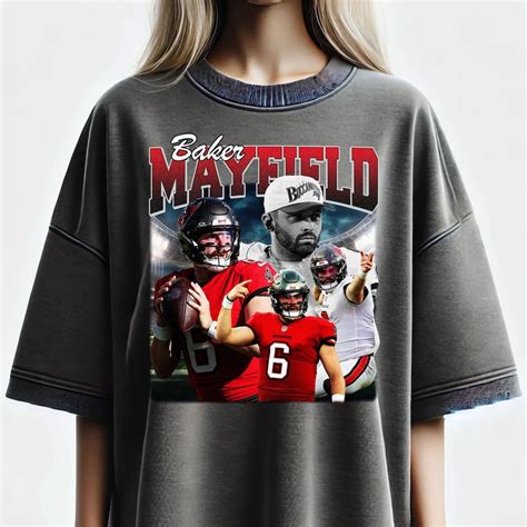 Now that we’re all hyped about the moments , let’s talk about the types of Baker Mayfield graphic t-shirts you can find out there, guys. It’s not just one-size-fits-all, thankfully! You’ve got your classic vintage-style tees, which often feature distressed graphics and a faded look, giving them that cool, worn-in feel right from the start. These are perfect if you’re going for that retro athletic vibe. Then there are the bold, modern designs. These often use sharp lines, vibrant colors, and contemporary typography to make a statement. They’re great for a clean, impactful look. You’ll also find tees with caricature art – these are super fun and often capture Baker’s personality in a playful way. Think of those cartoonish illustrations that are instantly recognizable. Of course, there are the minimalist designs. These are subtle yet stylish, maybe just featuring his number in a cool font or a small, iconic symbol associated with him. These are awesome if you prefer a more understated fan look. And we can’t forget the action shot tees! These are the ones that literally put you in the game, featuring dynamic photos or illustrations of Baker in action, mid-throw, or celebrating a big play. Some brands even offer customizable options, where you can add your own name or a special date alongside Baker’s, making your tee truly one-of-a-kind. The material matters, too! You’ll find everything from super-soft cotton blends that feel amazing against your skin to performance fabrics that are great for active days. Whether you’re looking for something to wear to a tailgate party, to the gym, or just to lounge around in, there’s a Baker Mayfield graphic tee out there that fits the bill and your personal style. So explore, have fun, and find the one that speaks to you!