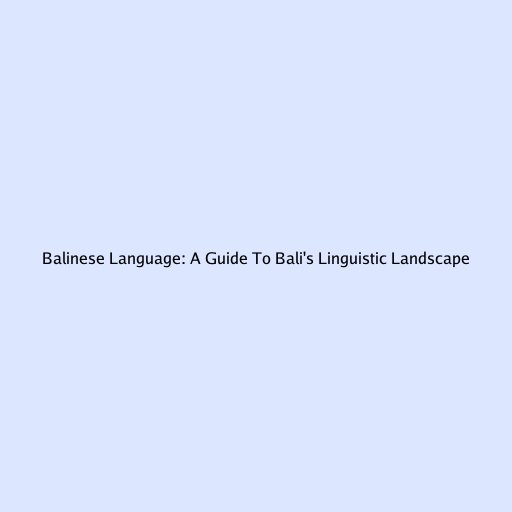 Balinese Language: A Guide to Bali’s Linguistic Landscape