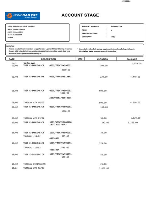 Okay, so you’ve downloaded your Bank Rakyat online statement . Awesome! Now, let’s talk about actually reading it and getting the most out of it. Think of your statement as your financial story for that period. At the top, you’ll usually find your account information, the statement period, and maybe your contact details. Then comes the core of it: the transaction details . This is where you’ll see a list of all the money that came into and went out of your account. Each transaction will typically have a date, a description (like the merchant name or type of transaction), and the amount. Deposits and credits (money coming in) are usually shown as positive numbers or in a separate section, while withdrawals and debits (money going out) are negative numbers or also in their own section. Pay close attention to the descriptions – sometimes they can be a bit cryptic, so if you don’t recognize something, it might be worth a quick investigation. Look for a ‘running balance’ column, which shows how much money was in your account after each transaction. This is super helpful for tracking your spending and ensuring you don’t overspend. You’ll also find summary sections, often showing your total deposits, total withdrawals, and your opening and closing balances for the statement period. This gives you a quick snapshot of your account activity. Don’t forget to check for any fees or charges the bank might have applied. These should be clearly itemized. If you spot anything you don’t understand or think is incorrect, now is the time to act. Compare the transactions on your statement with your own records (like receipts or your memory, if you’re good with that!). If something looks fishy, contact Bank Rakyat customer service immediately. Understanding these sections will give you serious power over your money management, guys!