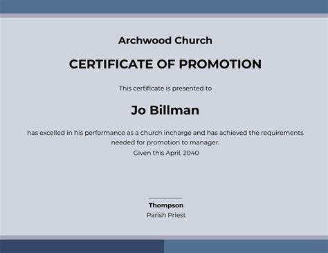 Finally, consider the lasting impact of a church promotion certificate . Unlike fleeting words of praise, a certificate is a tangible reminder of the recipient’s achievement. It’s something they can proudly display at home or in their office, serving as a constant source of encouragement and inspiration. It becomes a cherished memento that they can look back on with pride, reminding them of their connection to the church and the positive impact they’ve made. In a world where digital communication often overshadows physical keepsakes, a well-designed certificate offers a tangible and lasting expression of appreciation.