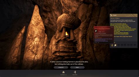 • Chenga Sherekhan tasks you with finding 3 items: A Fragment of Ancient Wisdom, Forgotten Witch’s Tooth, and a Tattered Manuscript .