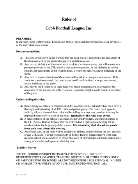 Team formation and league rules are the backbone of the Cobb Football League’s operations, ensuring a fair, competitive, and safe environment for all participants. The league usually implements a structured process for team formation, which may involve tryouts, drafts, and team assignments. The aim of this process is to create balanced teams that are competitive and offer all players the chance to develop their skills. The team formation process takes several factors into consideration, including player age, skill level, and experience. Coaches and league officials work together to assess players and place them in the appropriate positions. League rules are carefully designed to prioritize player safety and promote fair play. The rules cover all aspects of the game, including game duration, scoring, and penalties. The league adheres to a standard set of football regulations, with modifications made to suit the age groups and skill levels of the players. The CFL constantly reviews its rules to ensure they align with the latest best practices in youth football. The rules are designed to prevent injuries and promote sportsmanship. The league also has strict guidelines for equipment and coaching. All players must wear appropriate safety gear, and coaches are required to undergo training and certification. The league’s commitment to comprehensive rules and structured team formation helps ensure that the game is safe, enjoyable, and fair for everyone involved. The rules and team formation are vital elements in creating a positive and memorable experience for young athletes . The CFL is committed to upholding high standards of play and player safety. The league ensures that coaches are well-trained and that equipment meets safety standards. The league’s focus on structured team formation and comprehensive rules fosters a sense of unity and sportsmanship among players. The league continually evaluates and refines its rules and team formation processes to ensure they meet the evolving needs of its participants.