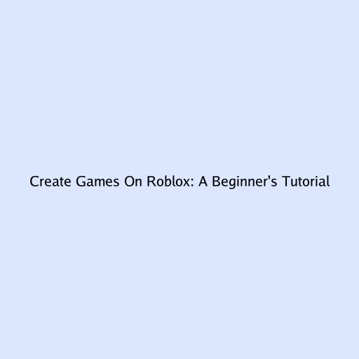 Create Games on Roblox: A Beginner’s Tutorial