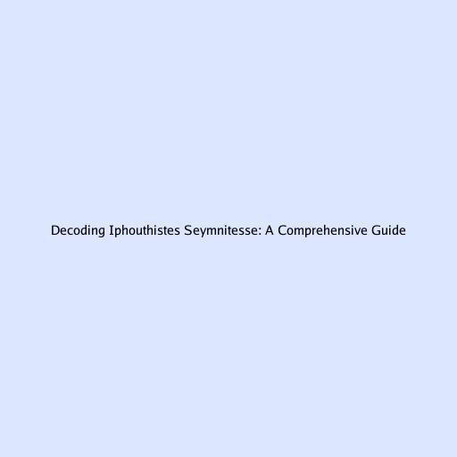 Decoding Iphouthistes Seymnitesse: A Comprehensive Guide