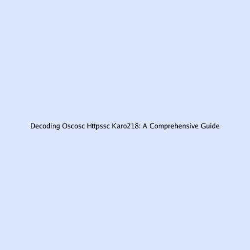 Decoding Oscosc Httpssc Karo218: A Comprehensive Guide
