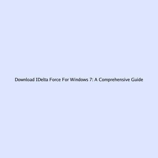 Download IDelta Force For Windows 7: A Comprehensive Guide