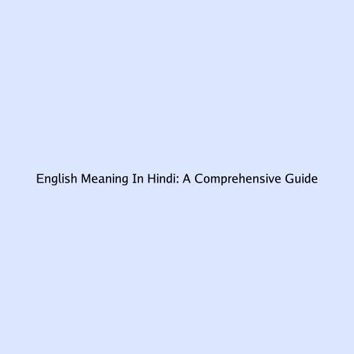English Meaning In Hindi: A Comprehensive Guide