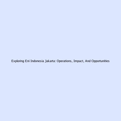 Exploring Eni Indonesia Jakarta: Operations, Impact, and Opportunities