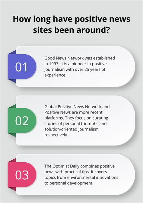 In addition, a positive news website may provide resources for further action, inspiring you to take part and join others to make a change. They often include calls to action, links to relevant organizations, and tips on how to get involved. This provides readers with the means to turn their inspiration into concrete action, making them active participants in creating a more positive world. They will generally steer clear of sensationalism and clickbait, prioritizing the accuracy and integrity of their reporting. They avoid using overly dramatic language and headlines, instead opting for a more measured and thoughtful approach. This ensures that readers can trust the information presented and feel informed rather than manipulated. Overall, a positive news website seeks to inform, inspire, and empower readers to take action, fostering a sense of hope and agency in a world that often seems bleak.