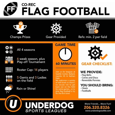 Okay, so you’re pumped about playing flag football in Seattle. Now, how do you actually find a league or team? Don’t worry, it’s easier than you might think. Several organizations offer flag football leagues for various skill levels and age groups. One popular option is to check out local recreation departments. Many cities and counties in the Seattle area, such as King County and Seattle Parks and Recreation, organize leagues and tournaments. These leagues often offer a range of divisions, from beginner to competitive, so you can find a good fit. You can usually find information on their websites or by contacting their recreation centers directly . Another great resource is sports and social clubs. These clubs often offer a variety of sports leagues, including flag football, and they’re a fantastic way to meet people and join a team. They often have regular social events, too, so it’s a great way to build connections and friendships beyond the field. Websites dedicated to recreational sports are also useful. You can often find listings of leagues, teams looking for players, and information on upcoming tournaments. These sites allow you to search based on location, skill level, and age group, making it easy to find a league that suits your needs. Make sure to check the league’s rules, schedules, and registration deadlines . Before you sign up, it’s a good idea to chat with the league organizers or current players to get a feel for the atmosphere and level of competition. This will help you find a team that aligns with your goals and experience level. Remember to be friendly, open to learning, and most importantly, ready to have a great time.