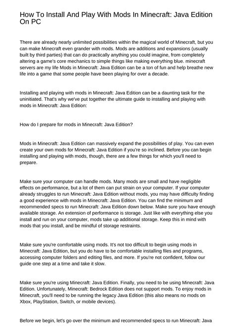 So, you want to spice up your Minecraft Java Edition experience? Mods are the way to go! They can add everything from new creatures and blocks to completely changing the game’s mechanics. But how do you actually install them? Don’t worry, guys, it’s not as scary as it sounds. This guide will walk you through everything you need to know to get your favorite mods up and running.