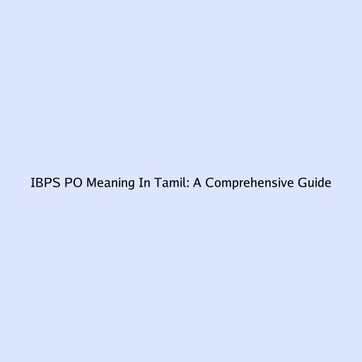 IBPS PO Meaning in Tamil: A Comprehensive Guide