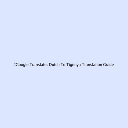 iGoogle Translate: Dutch to Tigrinya Translation Guide