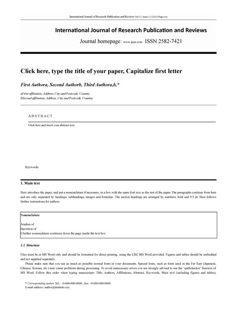 Okay, so why should you even bother with the IJRPR template ? Honestly, guys, it’s your best friend in the publication process for several super important reasons. First and foremost, consistency and professionalism . Imagine picking up a journal and every article looks wildly different – different fonts, different spacing, different ways of presenting figures. It would be a chaotic mess, right? The IJRPR template ensures that every single paper published in their journal has a uniform look and feel. This professionalism makes the journal itself appear more credible and organized, which is awesome for everyone involved. When your manuscript follows their template, you’re showing the editors and reviewers that you respect their publication standards and have put in the effort to present your work properly. This can honestly make a great first impression. Secondly, it streamlines the review process . Editors and reviewers are busy people, and they read a lot of papers. When your paper is formatted according to the IJRPR template, it’s easier for them to navigate, find specific information, and assess your research objectively. They don’t have to waste time deciphering unusual layouts or hunting for key sections like the methodology or results. A well-formatted paper allows them to focus on the quality and validity of your research, which is exactly what you want. Think about it: if your paper is hard to read, it’s much more likely that minor flaws might be overlooked or major ones magnified. A clean, structured paper helps your brilliant ideas shine through. Thirdly, it increases your chances of acceptance . While the content is king, presentation matters. A manuscript that adheres to the journal’s guidelines, including their template, demonstrates attention to detail. This can be a subtle but significant factor in the decision-making process. It shows you’re serious about publishing with them and have followed instructions meticulously. Editors might see a paper that doesn’t follow guidelines as a sign of carelessness, potentially leading to an easier rejection. On the flip side, a paper that fits perfectly into their format signals that you’re a disciplined researcher. Fourthly, it saves you time and reduces stress . Trying to figure out formatting from scratch or constantly reformatting your paper to meet different journal requirements can be a huge headache. The IJRPR template provides a ready-made structure. You just need to plug in your content. This saves you a ton of time that you can better spend refining your research, writing your discussion, or preparing your figures. Less time spent on formatting means less stress for you, guys! Finally, it helps with indexing and discoverability . Journals often use specific formatting conventions to help with indexing their articles in various databases. By using the template, you’re ensuring your paper is structured in a way that facilitates this process, making it easier for other researchers to find your work in the future. So, in short, the IJRPR template isn’t just a set of rules; it’s a tool designed to help you, the journal, and the readers. Embracing it is a smart move for any author aiming for publication success.