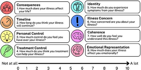 • High Impact and Consequences: If you score high on the perceived impact and consequences of your illness, it might suggest a high level of distress. This could prompt the clinician to explore psychological support, such as counseling or stress management techniques, alongside medical care. Recognizing the emotional burden is just as important as treating the physical symptoms.