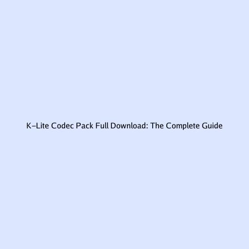 K-Lite Codec Pack Full Download: The Complete Guide