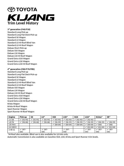 Each model played a crucial role in establishing the Kijang’s reputation as a versatile and dependable vehicle. These variations showcased the Kijang’s adaptability and its ability to cater to diverse needs, solidifying its position as a staple in Indonesian society. The Kijang I’s different models reflected the evolving needs of the Indonesian market, and its success in meeting those needs cemented its place in automotive history.