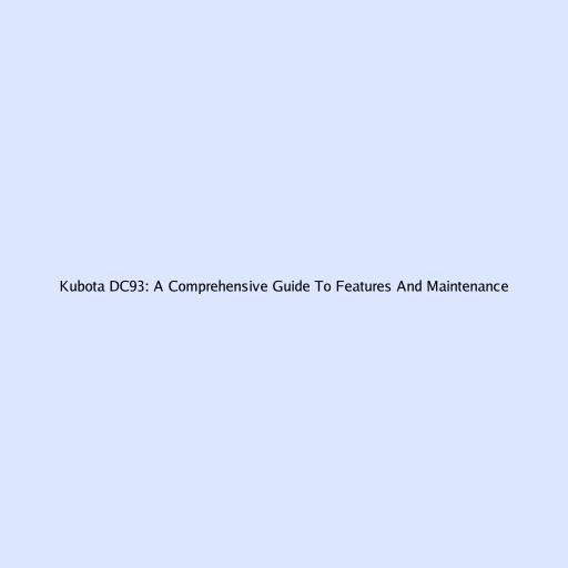 Kubota DC93: A Comprehensive Guide To Features And Maintenance