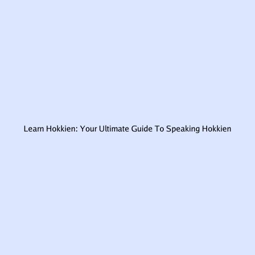 Learn Hokkien: Your Ultimate Guide to Speaking Hokkien