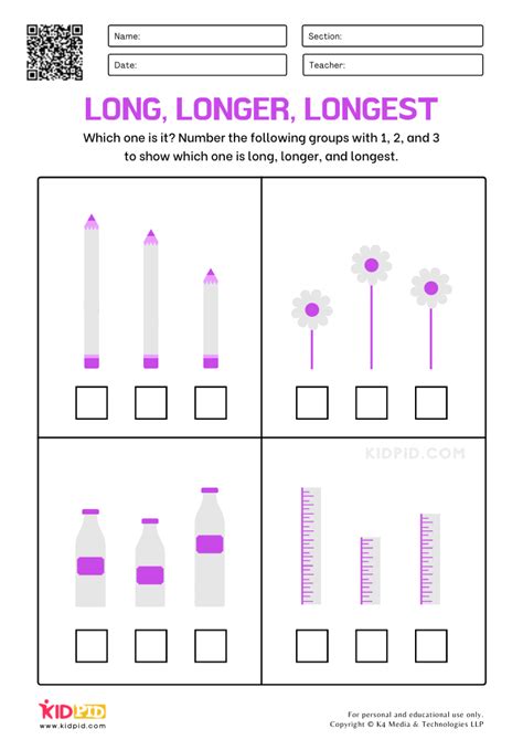 • Ordering Objects: These activities challenge kids to arrange objects in order from shortest to longest . This could involve cutting out pictures and pasting them in the correct order or drawing objects of different lengths.