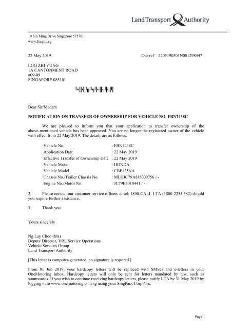Hey guys! Ever wondered what happens when a vehicle changes hands in Singapore? Well, buckle up, because we’re diving deep into the world of LTA (Land Transport Authority) ownership transfer notifications . This is super important stuff, whether you’re buying, selling, or just curious about how things work. Let’s break it down in a way that’s easy to understand, so you know exactly what to expect when that notification pops up.