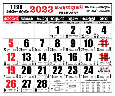 Malayalam Calendar: February 10, 2023
