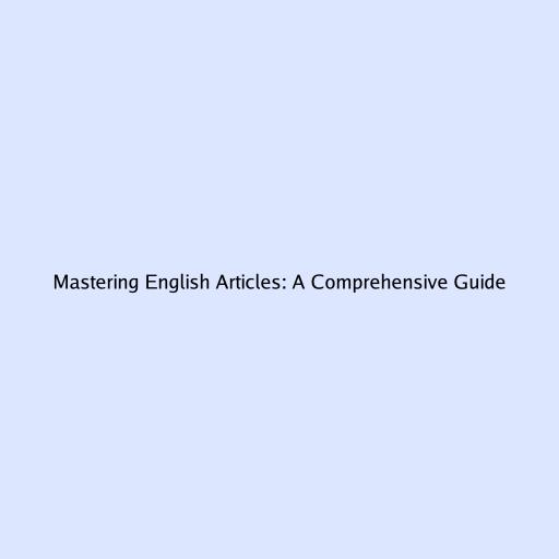 Mastering English Articles: A Comprehensive Guide