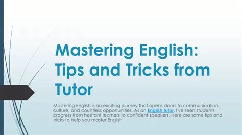 Mastering English: Tips, Tricks, And Techniques