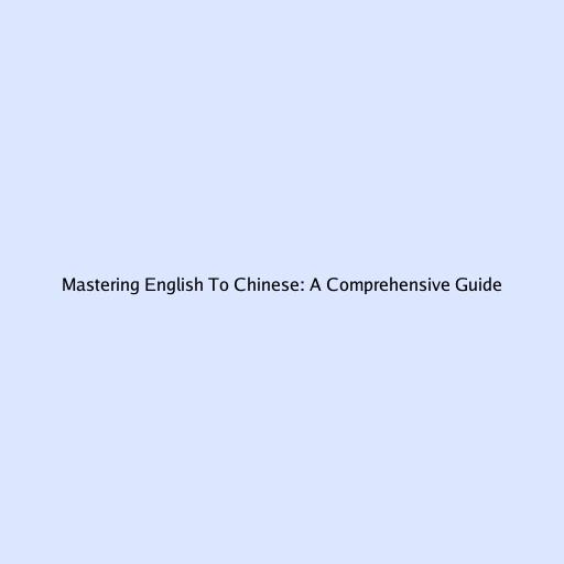 Mastering English To Chinese: A Comprehensive Guide