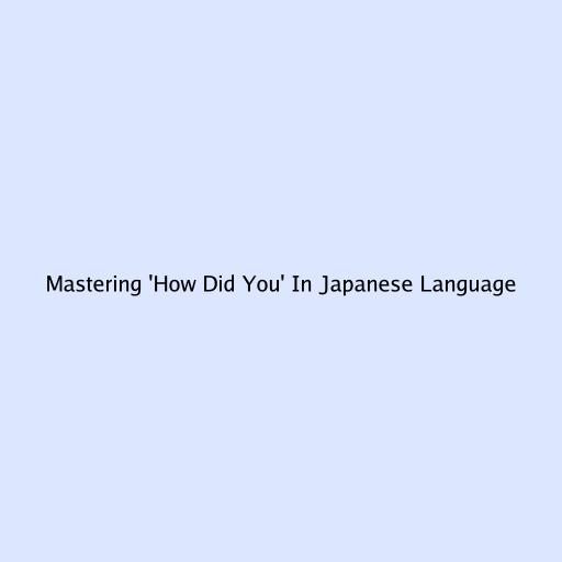 Mastering 'How Did You' In Japanese Language