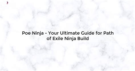 Ninja Builds For Path Of Exile: Your Ultimate Guide