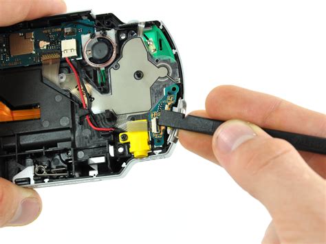 Once the screws are removed, the faceplate and UMD door are the next areas to tackle. The PSP’s design usually involves the faceplate separating from the main body. For the PSP-1000, once the back screws are out, the faceplate can often be gently pried away from the main body, usually starting from the bottom corners near the charging port. For the Slim & Lite models ( 2000 3000 ), the faceplate often has clips along the sides and top, requiring careful use of an opening pick to release them. Take your time and apply gentle, even pressure – forcing it can snap the plastic tabs. Once the faceplate is removed, you’ll gain access to the screen and the button membranes. If your goal is a PSP screen replacement , this is where you’ll be working. The screen is typically held in by a frame and sometimes a few more tiny screws, along with a delicate ribbon cable that connects it to the motherboard. Always handle ribbon cables with extreme care ; these are often the most fragile components during disassembly . Gently flip up the small locking tabs on their connectors before pulling the ribbon cable straight out.