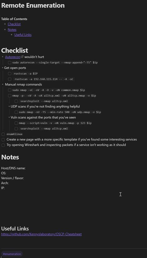 1. Walkthrough (from “Wed”) : Kick things off by using the enumeration phase of the ESC model. This is where you gather initial information. Use tools like Nmap to scan for open ports and services, then identify the versions of the running software. Document everything!