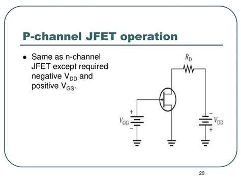 • Negative Gate Voltage: To control the current flow, you need to apply a negative voltage to the gate with respect to the source. The more negative the voltage, the less current flows. This is opposite to N-Channel JFETs, where a positive gate voltage is used.
