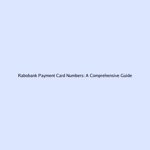 Rabobank Payment Card Numbers: A Comprehensive Guide