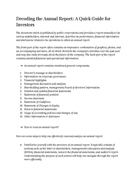 • Opportunity Assessment: The annual report can also give you insight into the opportunities the company sees. Here are some key areas to consider: