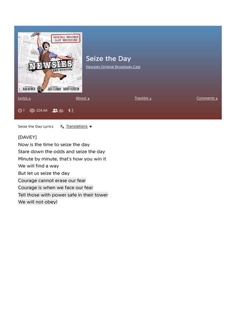 In conclusion, the lyrics of Newsies , especially “Seize the Day,” are a powerful force that continues to captivate audiences. They tell a story of struggle, resilience, and the ultimate triumph of the human spirit. The clever wordplay, the emotional depth, and the universal message of empowerment make these lyrics truly unforgettable. From the streets of New York to the stages of Broadway and beyond, the words of Newsies have inspired generations to find their voice, stand up for their beliefs, and, of course, to seize the day. It’s a reminder that even in the face of overwhelming odds, unity and determination can lead to extraordinary change. So, the next time you hear “Seize the Day,” let it be a reminder of your own power and the potential that lies within collective action. Keep fighting, keep believing, and keep seizing your day, guys! The lyrical legacy of Newsies is a testament to the enduring power of a well-told story and the unwavering spirit of those who dare to make a difference.