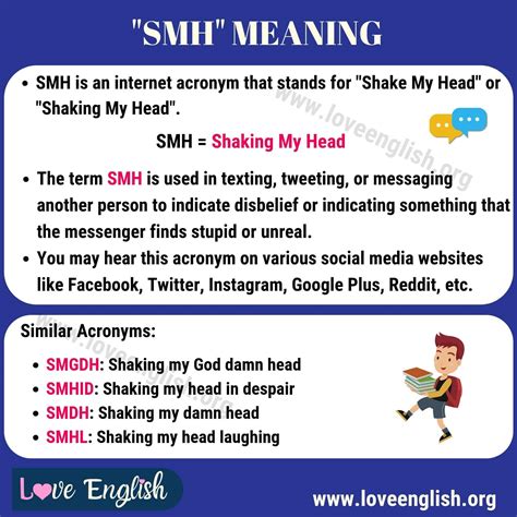 Alright, so what exactly does SMH mean ? Well, straight up, it stands for “ shaking my head .” That’s the literal translation. But, just like any good piece of slang, the meaning can get a little nuanced, depending on how it’s used. Generally, when someone types “SMH,” they’re expressing a feeling of disapproval, disappointment, disbelief, or even embarrassment. Think of it as the digital equivalent of physically shaking your head, often accompanied by a sigh or eye roll. It’s a quick way to convey a reaction to something you find foolish, annoying, or simply face-palm-worthy. Understanding the core meaning of this acronym is crucial to improve your communication skills and better convey your thoughts.