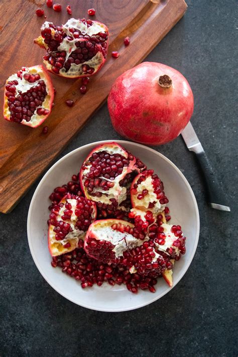 Alright folks, now that we’re all hyped up about the pomegranate , let’s talk about the practical stuff: how to pick the best ones, get them open, and actually eat them without making a huge mess. Choosing a good pomegranate is key to enjoying its sweet-tart flavor. When you’re at the store , look for fruits that feel heavy for their size, which indicates they are full of juice. The skin should be smooth, firm, and brightly colored – usually a rich red, though some varieties can have yellow or pinkish hues. Avoid pomegranates with soft spots, bruises, or cracks, as these can be signs of spoilage. Don’t worry if the skin looks a little leathery; that’s often a sign of ripeness. The little crown-like tip should be dry, not moldy. Now, for the fun (and sometimes messy) part: opening a pomegranate . Forget trying to peel it like an orange; that’s a recipe for stained fingers! The best method involves a few simple cuts. First, slice off the top crown (about half an inch down). Then, gently score the leathery skin in sections, cutting just deep enough to go through the peel but not into the arils. You can make four or five vertical scores. Next, gently pry the sections apart with your fingers. You can then carefully push the arils out into a bowl. For less mess, many people swear by doing this underwater in a bowl of water. The arils will sink to the bottom, and the membrane will float, making separation much easier. Once you’ve got those beautiful arils out, the possibilities are endless! Enjoying your pomegranate can be as simple as eating the arils straight from the bowl – a delightful sweet-tart snack. You can also sprinkle them over salads (think spinach, goat cheese, and walnuts!), yogurt, oatmeal, or cottage cheese for a burst of flavor and texture. Blend them into smoothies for a vibrant color and antioxidant boost. Use the juice to make vinaigrettes, sauces, or even cocktails and mocktails. Pomegranate molasses, a reduced syrup made from the juice, adds a wonderfully tangy depth to savory dishes and marinades. Don’t forget the peel, either! While not typically eaten directly, dried pomegranate peel has been used in traditional medicine and can be brewed into a tea. So, don’t be intimidated by this unique fruit. With a little know-how, you can easily unlock its ruby treasures and add a touch of deliciousness and health to your meals.