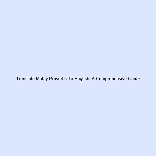 Translate Malay Proverbs to English: A Comprehensive Guide