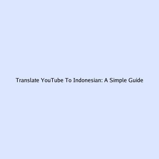 Translate YouTube To Indonesian: A Simple Guide