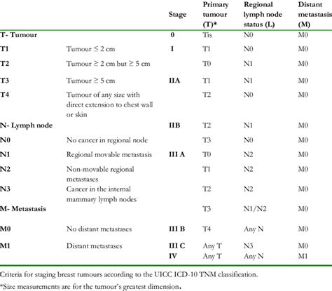 Alright, let’s get down to business and unpack the TNM system for breast cancer staging. TNM stands for Tumor , Node , and Metastasis . It’s a standardized way oncologists worldwide classify the extent of a person’s cancer. Think of it as a detailed report card for the cancer itself. First up, the ’T’ – Tumor. This part describes the size and extent of the primary tumor . Doctors measure the tumor’s dimensions in centimeters and also assess if it has invaded surrounding tissues. For instance, T1 might mean a small tumor (usually 2 cm or less), while T4 could indicate a larger tumor that has grown into the chest wall or skin. The T category is super vital because it gives us a clear idea of the local extent of the disease. It’s the first big clue about how aggressive the cancer might be and how easily it can be managed surgically. The grading of the T component is meticulously done, often involving imaging techniques like mammograms, ultrasounds, MRIs, and sometimes direct examination during surgery. The pathological report from a biopsy or surgical removal is the gold standard for determining the T stage accurately. It’s not just about the size; it’s also about the characteristics of the tumor, such as its invasiveness, which the T stage aims to capture. This detailed assessment helps surgeons plan the best type of surgery, whether it’s a lumpectomy or a mastectomy, and whether lymph nodes need to be removed as a precautionary measure. The T stage is a cornerstone in the initial assessment and plays a significant role in the overall staging process. It’s the initial snapshot of the cancer’s physical presence in the breast. It’s the foundation upon which the rest of the staging information is built. The specific criteria for each T subcategory are complex and are updated periodically by the AJCC (American Joint Committee on Cancer) to reflect the latest scientific understanding and advancements in detection and treatment. So, while we can generalize, the exact measurements and criteria are precise and medically defined.