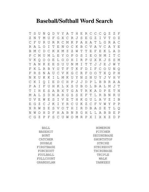 Unleash The Fun: Printable Baseball Word Search Puzzles