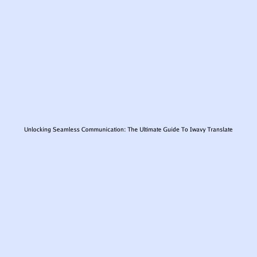 Unlocking Seamless Communication: The Ultimate Guide to iwavy Translate