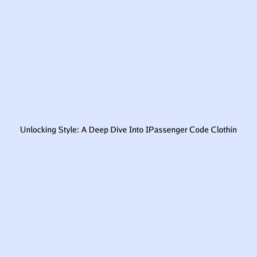 Unlocking Style: A Deep Dive Into IPassenger Code Clothing