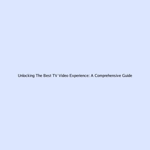 Unlocking the Best TV Video Experience: A Comprehensive Guide