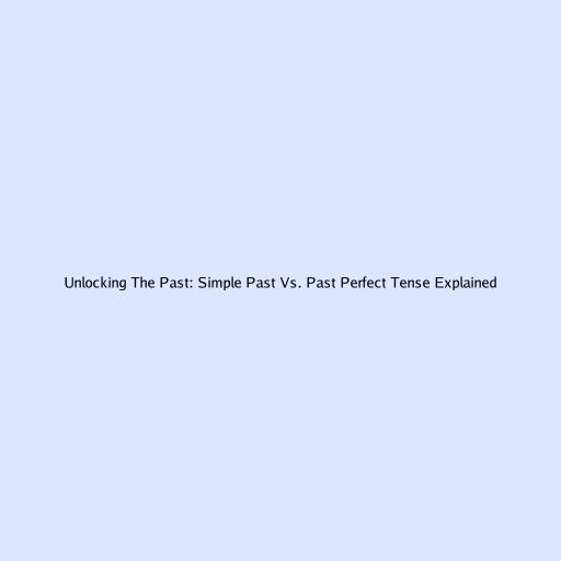 Unlocking The Past: Simple Past Vs. Past Perfect Tense Explained